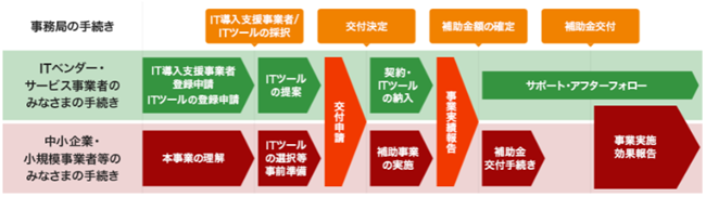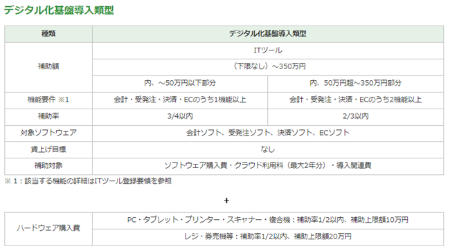ITツールを導入する際の経費の補助を受ける補助金で、中小企業・小規模事業者等が取り入れる会計ソフト・受発注ソフト・決済ソフト・ECソフトの経費を一部の補助を受けられます。