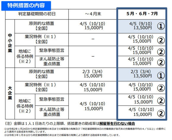 判定基礎期間(賃金の締切期間)の初日が5月~7月の申請分については以下の特例措置が適用されます。