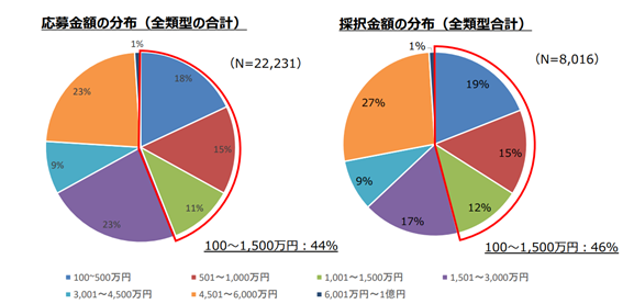 【応募金額・採択金額の分布について】