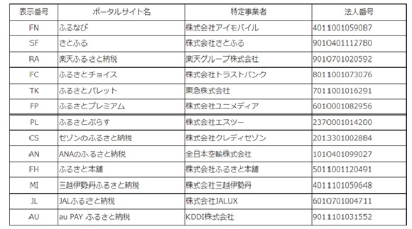 特定事業者とは地方公共団体と特定寄附金の仲介に関する契約している事業者となります(令和3年9月15日現在)。