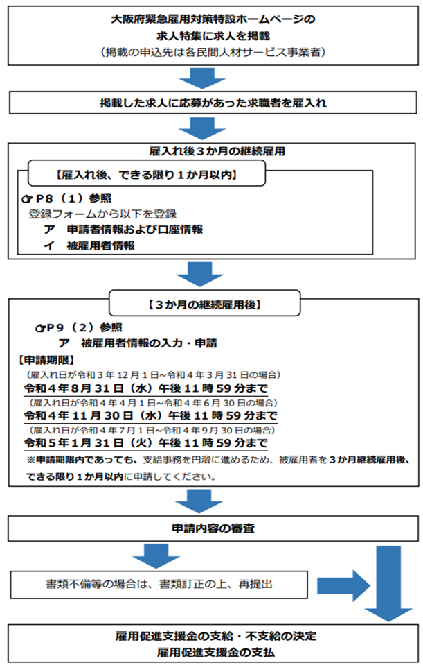 「大阪府雇用促進支援金」とは、新型コロナウイルス感染症の感染拡大により大阪府内の雇用情勢が悪化している状況において、事業主による労働者の雇用の促進を図り、もって失業者の早期の就業に資するため、求職者を雇い入れ、一定期間雇用している事業主に対し、雇用等に要する費用を支援する制度です。