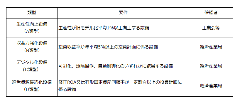生産性等設備を構成するもの、国内への投資であること、中古資産・貸付資産でないこと等