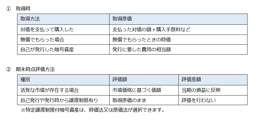 ポイントは『期末時点で時価評価を行う』点です。所有している仮想通貨に含み益がある場合には、評価益に対して法人税等が課税されることになります。
