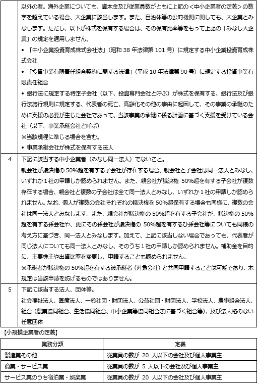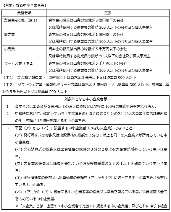 補助対象者は、以下の(1)~(14)の要件を満たし、かつ「補助対象事業」の要件を満たす中小企業者等となります。